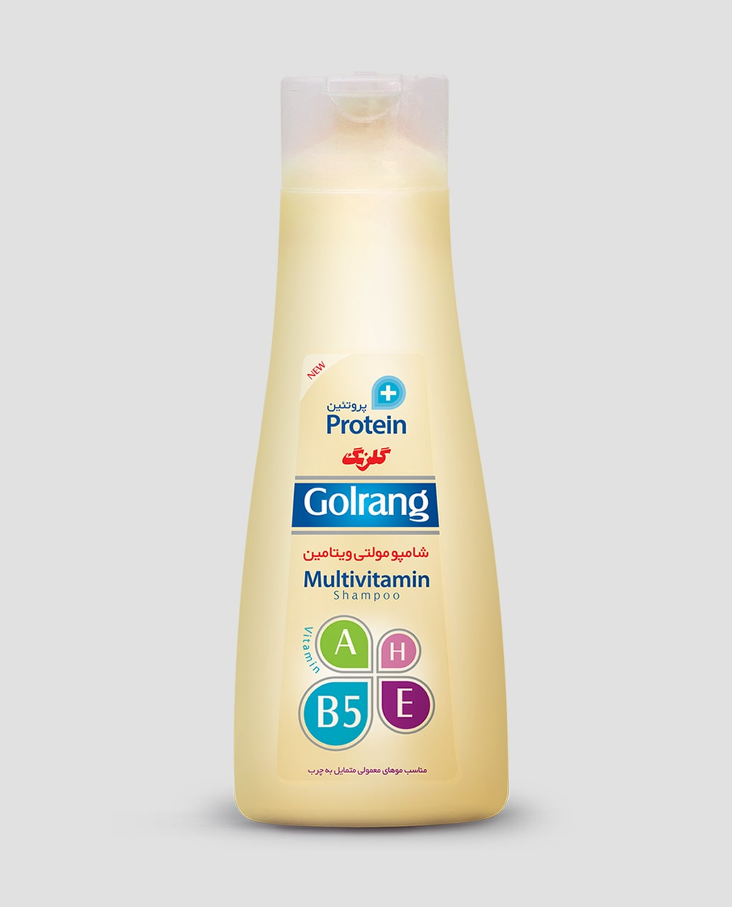 شامپو مولتی ویتامین + پروتئین گلرنگ با قدرت پاککنندگی بالا، حاوی پروتئین هیدرولیز شده گندم بوده که با قابلیت نفوذ راحت و حفظ رطوبت طبیعی پوست سر، موجب حالتپذیری موها میشود و از موها در برابر آسیبهای محیطی محافظت میکند. این محصول در وزن ۹۰۰ گرمی تولید و عرضه شده است..